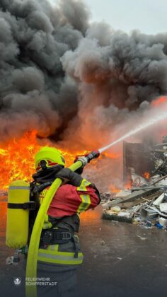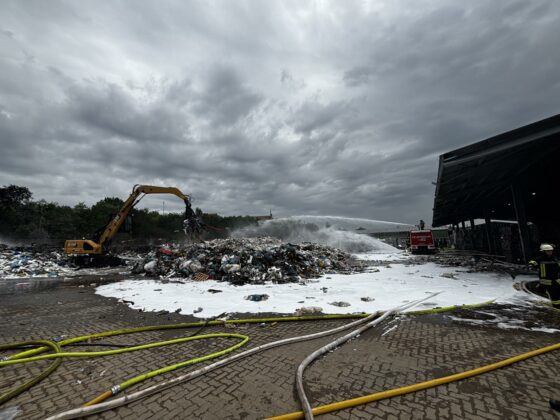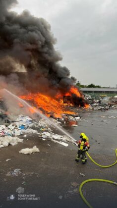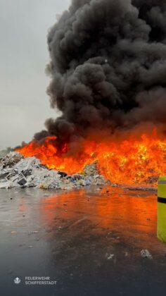 Schifferstadt, 03. Mai 2025 – Am gestrigen Samstagmorgen kam es auf dem Gelände eines Recyclingbetriebs im Industriegebiet Nord zu einem Großbrand. Gegen 8:20 Uhr entdeckten Mitarbeitende des Betriebs eine Rauchentwicklung in einem Müllhaufen im Außenbereich und alarmierten umgehend die Feuerwehr. Erste Löschversuche mussten abgebrochen werden, da sich im Müll plötzlich Stichflammen entwickelten.